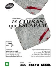 O Programa de Pós-Graduação em Artes Visuais da Universidade Estadual do Paraná (PPGAV/UNESPAR) convida para a exposição individual da aluna do PPGAV, Luiza Urban, resultado de sua pesquisa de mestrado. A exposição As Coisas que Escapam conta com curadoria de Fabricia Jordão, docente permanente do PPGAV. A abertura será no dia 17 de março, às 19h, na Galeria do 1º andar da CAIXA Cultural Curitiba.