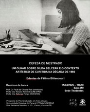 Notícias Banca de Mestrado - Edenise de Fátima Bittencourt O PPGAV convida para a banca de mestrado de Edenise de Fátima Bittencourt, dia 15/04/26, 14h30, Sala 410, Sede Tiradentes, Campus Curitiba I, Unespar