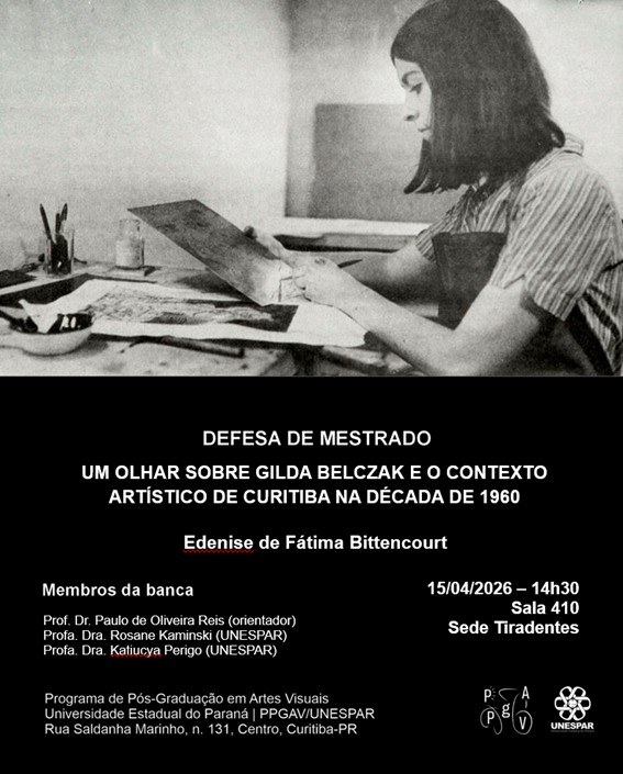 O PPGAV convida para a banca de mestrado de Edenise de Fátima Bittencourt, dia 15/04/26, 14h30, Sala 410, Sede Tiradentes, Campus Curitiba I, Unespar