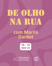 CRONOGRAMA 10 de novembro - primeiro encontro 19h: Fala inaugural de Marilá Dardot sobre alguns projetos criados a partir de locais/contextos específicos: “Diário”, “Lisbon blues”, “Ir y Volver”, “Primeira página”, “Tort(guerr)illa”, “Tenemos deseo aún” e “Foguetex do futuro”. 11 de novembro - segundo encontro das 14h às 15h00: Apresentação dos participantes, conversa sobre o contexto urbano local. 15h00 às 17h30: Deambulação coletiva pelo entorno. Levantamento de problemas/interesses a partir da experiência. 12 de novembro - terceiro encontro 14h às 17h30: Apresentação e debate de impressões, ideias e propostas para uma (ou mais de uma) ação/intervenção a ser realizada. Visita a locais propostos. Organização da produção e logística para a realização. 14 de novembro 14h: Com Marilá Dardot | Local: Laboratório de Performance - Sala 412 |
