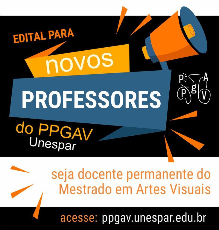 O Programa de Pós-Graduação em Artes Visuais da Universidade Estadual do Paraná (PPGAV/UNESPAR) abre Edital para o credenciamento de 4 (quatro) novos Docentes Permanentes no Mestrado em Artes Visuais. Neste primeiro momento, o Edital está aberto para professores que pertençam ao quadro de docentes efetivos da UNESPAR. Venha trabalhar conosco!
