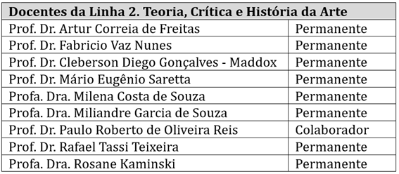 LINHA 2: TEORIA, CRÍTICA E HISTÓRIA DA ARTE