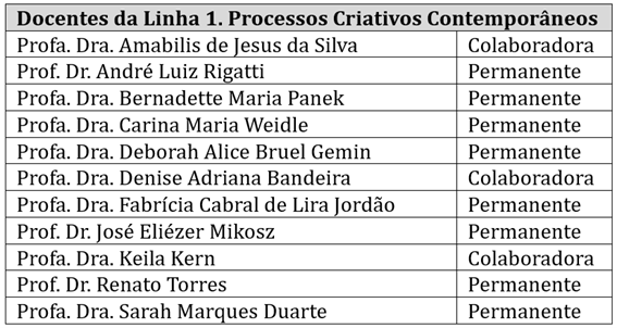 LINHA 1: PROCESSOS CRIATIVOS CONTEMPORÂNEOS